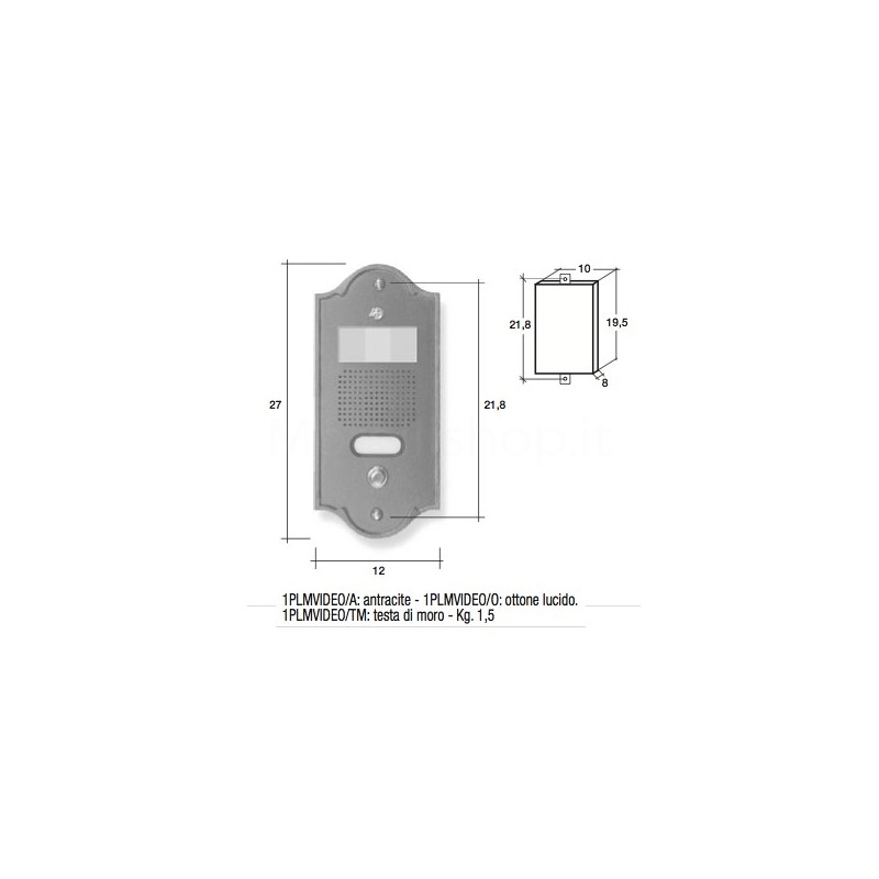 PUSH BUTTON PANEL FOR VIDEO INTERCOM 1 NAME MOD. 1PLMVIDEO/A IN BRASS ANTHRACITE FINISH