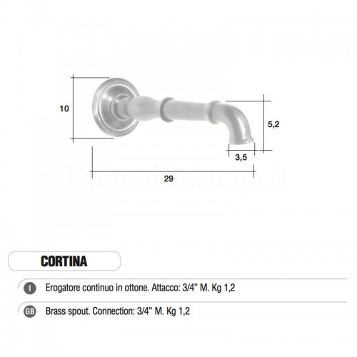 Erogatore in ottone naturale, attacco 3/4"M questo significa che il rubinetto presenta una filettatura esterna per l'attacco all'impianto idrico.