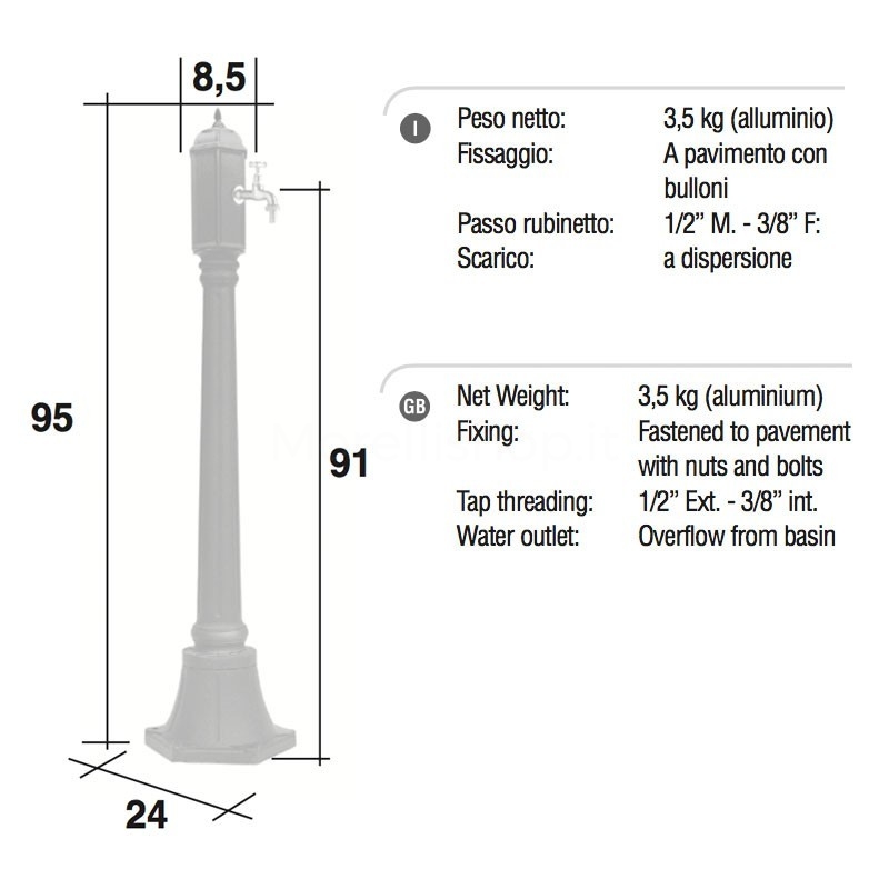 Fontana da giardino in alluminio LOLA 4 Morelli