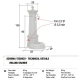 OPTIONAL: È disponibile la foratura (con piletta) sul fondo della vasca per permettere il completo scarico dell'acqua ed anche un secondo foro sul fusto della fontana per un secondo rubinetto di erogazione, questi sono servizi aggiuntivi a pagamento. Per queste modifiche vi chiediamo di contattarci..