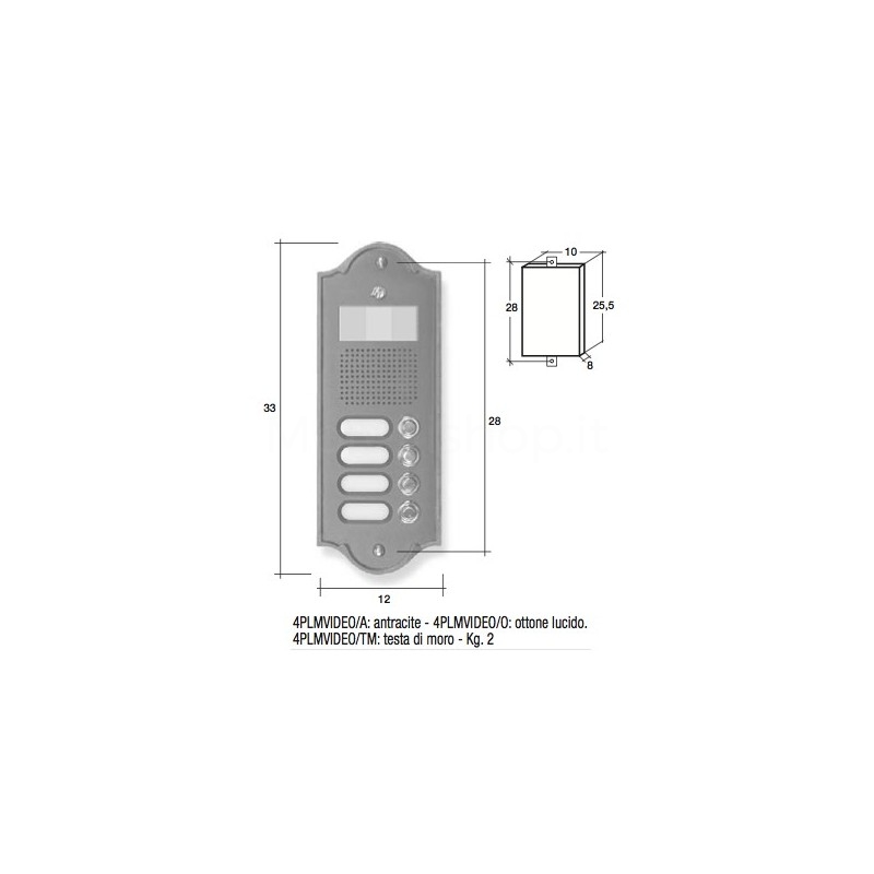 MATERIALE: Pulsantiera in fusione di ottone, viti, pulsante e stemma in ottone, vetrino proteggi telecamera in plastica. L'ottone naturale scurisce nel tempo.