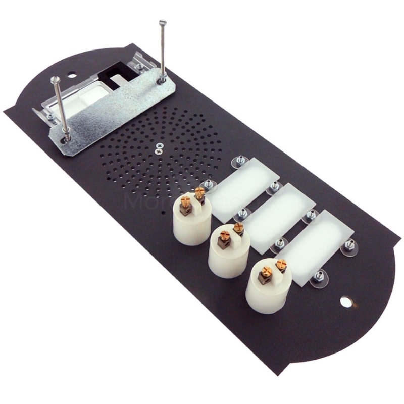 Viene fornita anche una dima o barra distanziatrice forata per permettere il mantenimento della corretta posizione dei fori di fissaggio della pulsantiera sulla scatola da incasso, durante la posa.
